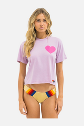 Sold out - Aviator Nation Heart Print Boyfriend Tee in Mauve & Neon Pink