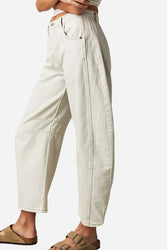 - Free People Good Luck Mid-Rise Barrel Jeans in Milk