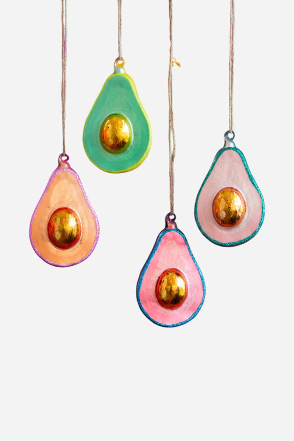 We love a good avocado! These ornaments are sure to be a hit this holiday season! A beautiful and elegant Avocado Ornament in an assortment of 4 colors to choose from. Each sold separately.