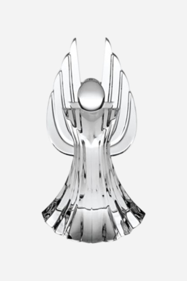 Angel Sculpture II Angelus. This customizable gift, representing the Angel Gabriel and the Annunciation, gives a special touch to Christmas decorations, thanks to its pure form and the sparkling play of light provided by the crystal’s pleated effect.