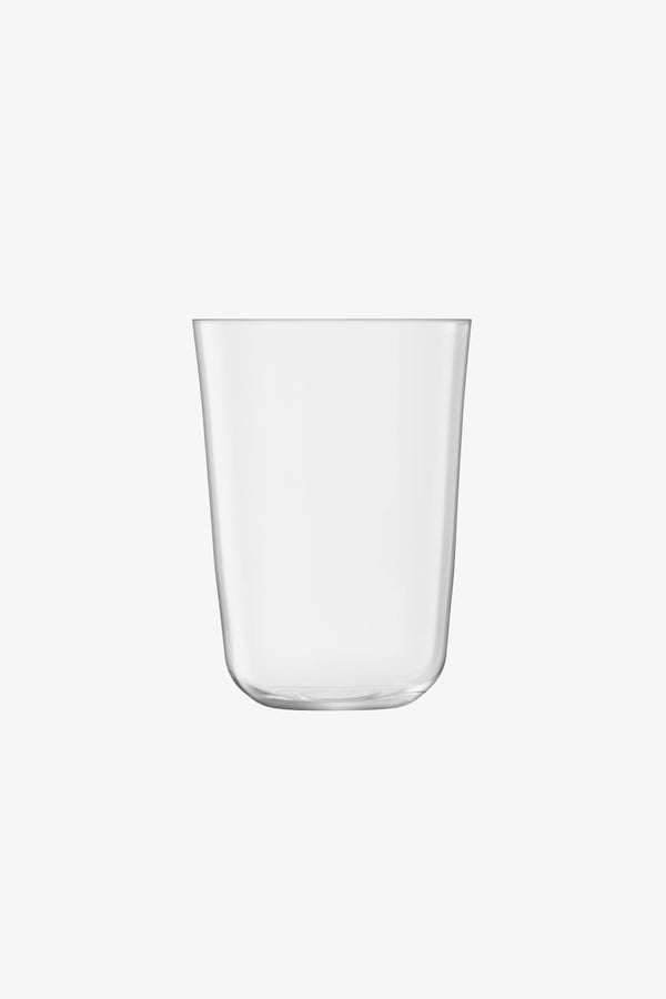 Set of four tumblers with a rounded base and softly tapered profile. A versatile shape for water, lager and long cocktails. Made from lead-free soda-lime glass for clarity and strength, and designed for the everyday.