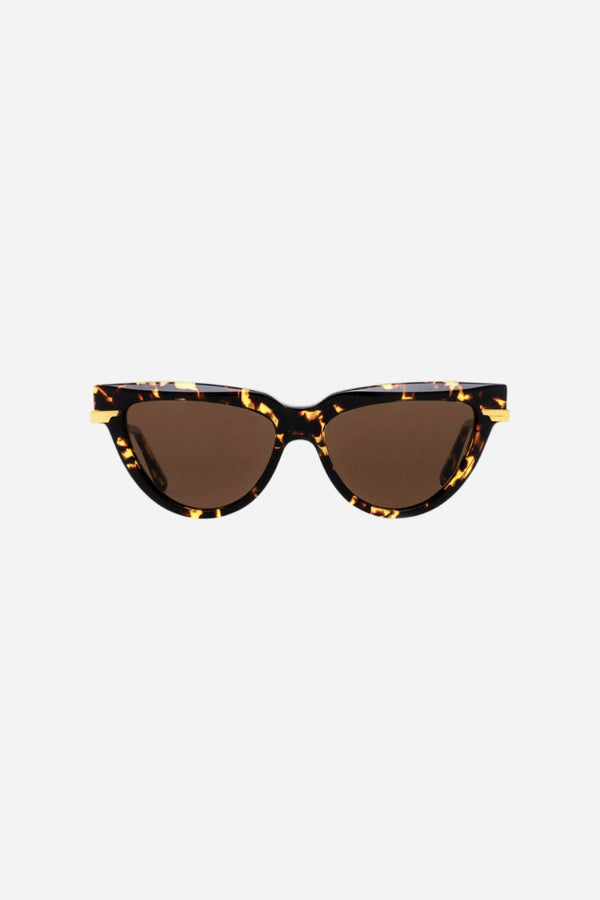 Havana/Gold (002) Sunglasses with Brown lenses (BV1265S 002 54) by Bottega Veneta™. Size: 54-15-140, Shape: Cat-Eye, Material: Recycled Acetate.
