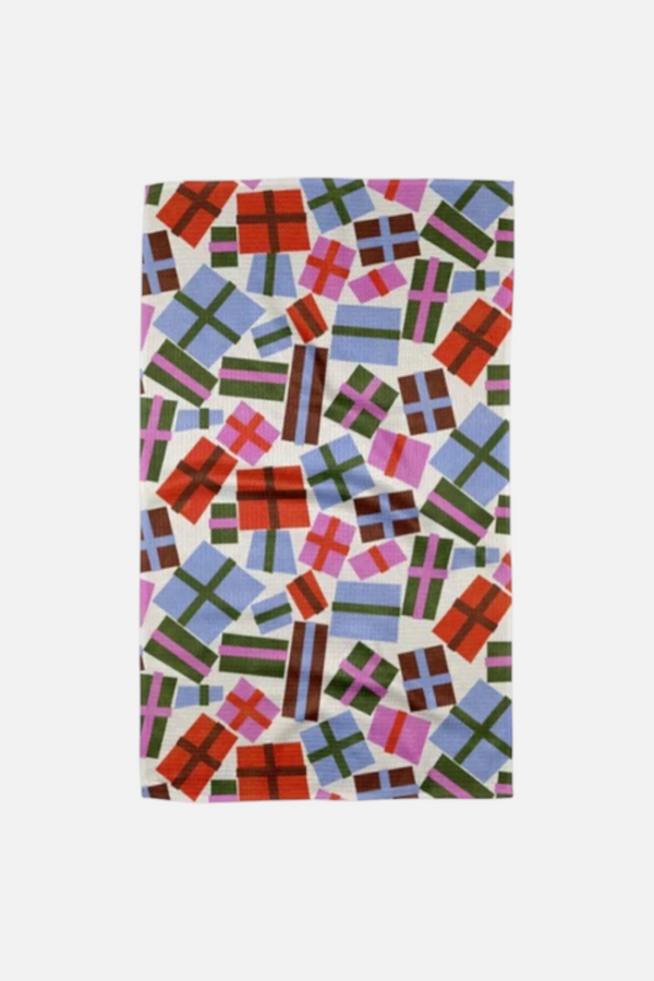 The Geometry Towels Cheerful Presents offer a refined blend of functionality and style. Crafted from tightly-woven Geoweave™ fabric, these towels boast exceptional absorbency and quick-drying properties, ensuring they remain practical for daily use. Their wrinkle-resistant design maintains a polished appearance, making them as visually appealing as they are efficient. Elevate your kitchen essentials with a towel that combines durability and elegance effortlessly.