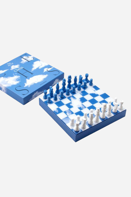Discover our unique edition, "Chess Clouds", featuring a spectacular design inspired by the sky. The pieces and board are made of wood, with a thin layer of acrylic mounted on the board's surface, creating an impressive reflection. The box is crafted from high-quality art paper, adorned with a printed cloud formation, and enhanced with a hot foil print in navy and white.