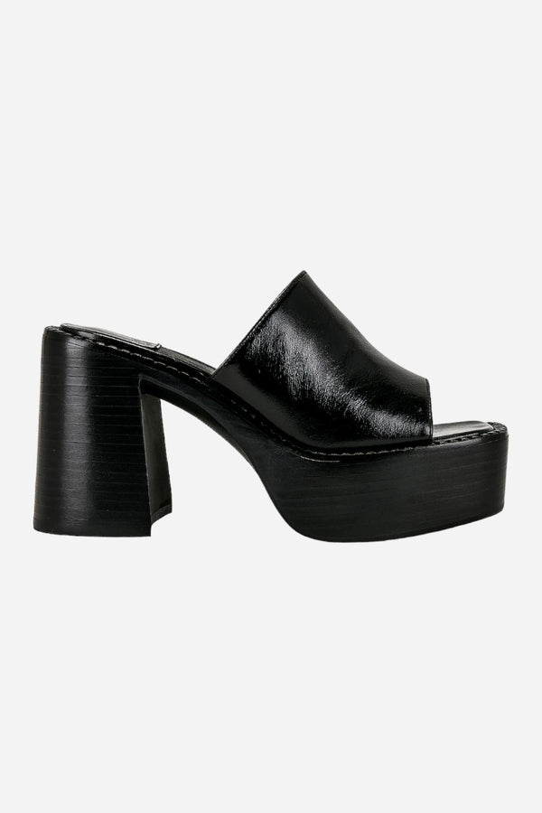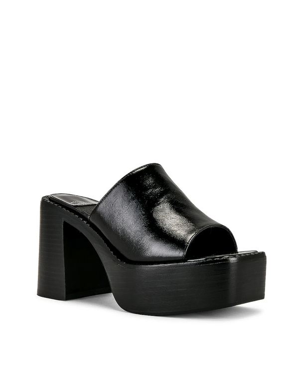Cushioning at the heel and supple leather lining ensure comfort in this '70s-inspired open-toe mule raised on a dramatic platform and chunky heel.