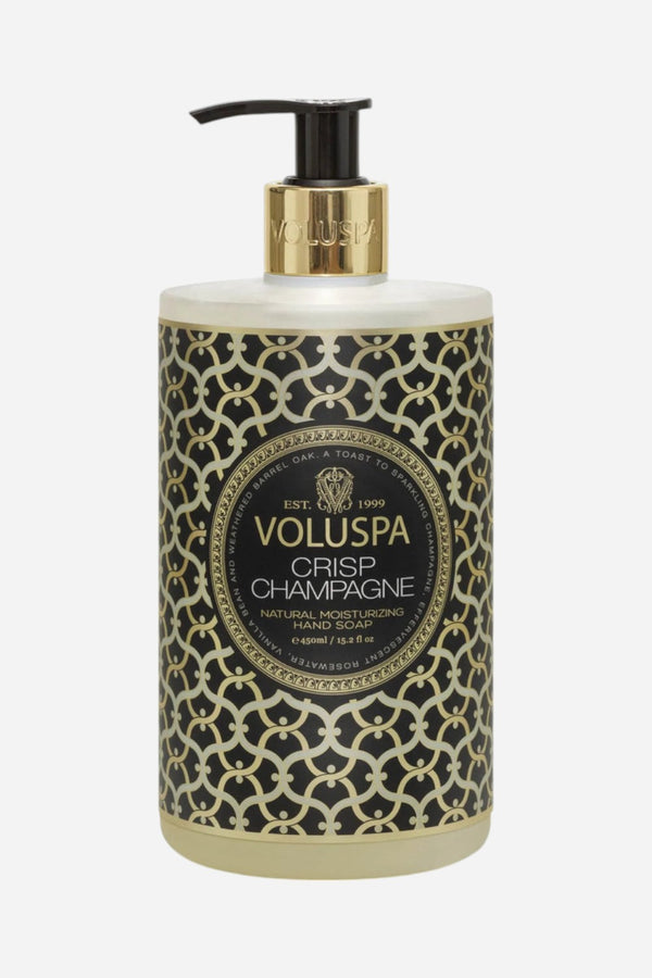 The Voluspa Crisp Champagne Hand Soap captures that first-sip sensation—where crisp bubbles dance on your tongue and notes of vanilla, apple, and juicy peach rise from a chilled wooden cask. Crisp Champagne embodies the anticipation and sparkle of popping a bottle, turning any moment into a reason to celebrate. Effervescent, elegant, and always toast-worthy.
