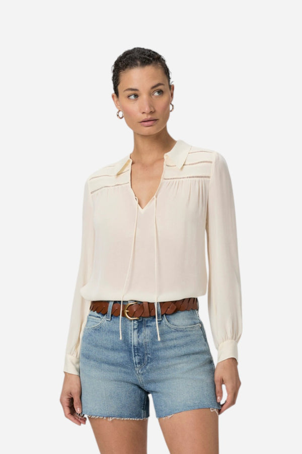 The Paige Dani high-waisted short blends modern style with a vintage vibe. Featuring an ultra high-rise and a slightly A-line silhouette, this pair is crafted from PAIGE VINTAGE denim in a vintage-inspired light wash with a raw hem. PAIGE VINTAGE removes the hassle of breaking in your favorite pair of vintage shorts. They've combined the comfort of stretch with the timeless feel of authentic vintage denim to create super-soft shorts that feel perfectly worn-in from the very first wear.