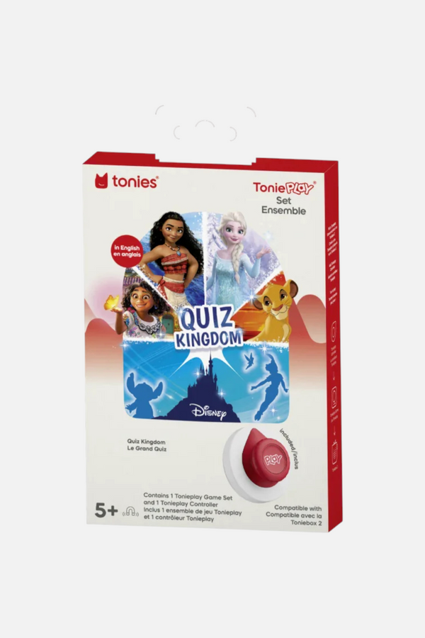 Challenge young minds with the Tonies Disney Quiz Kingdom, featuring over 500 questions spanning beloved classics and contemporary favorites. From The Lion King to Encanto, kids explore iconic Disney worlds while testing their knowledge against friends and family. The included Tonieplay Controller unlocks endless gaming possibilities across the entire Tonieplay library—a universal gateway to screen-free entertainment. Designed for ages 5+, this sophisticated gaming experience combines interactive quizzes and adventures without screens or advertisements, making it an ideal choice for parents seeking meaningful, device-free play that grows with their child.