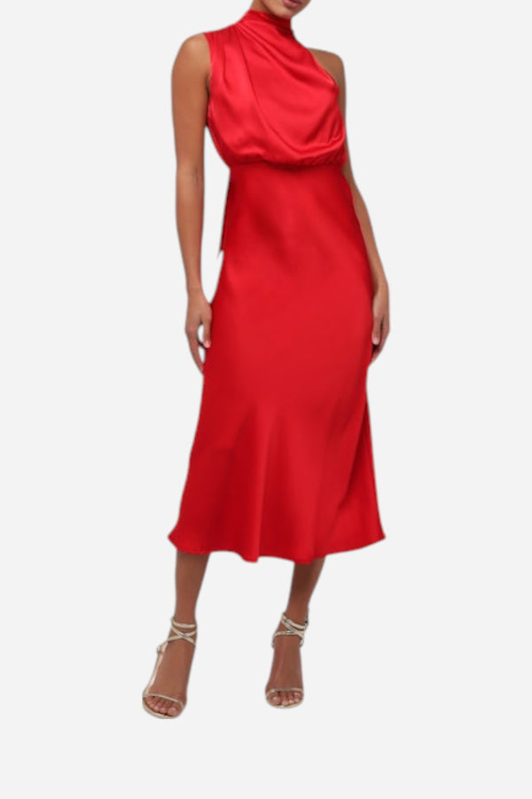 Lulus Dublin Asymmetrical Neck Midi Dress in Red
