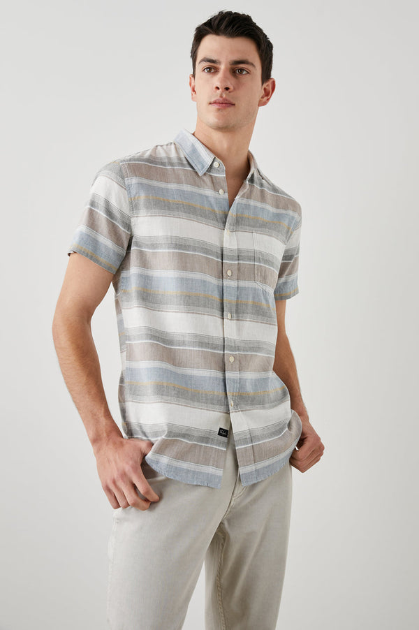 The Fairfax Shirt is an essential wardrobe piece that works for both work and the weekend, thanks to its relaxed fit and ultra soft cotton makeup. The lightweight short sleeve button-down is done in a muted striped pattern that embraces classic Western style.