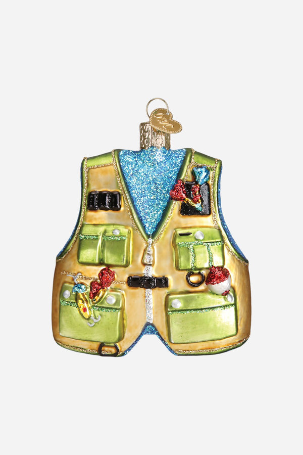The fishing vest is essential apparel for a fisherman wading in the water. The vest allows the angler to have tools, tackle and more all within arm s reach. A fisherman s catch-of-the-day tales are notorious for growing in the imagination as time passes. Celebrate the fisherman or woman in your life with the fishing vest ornament.