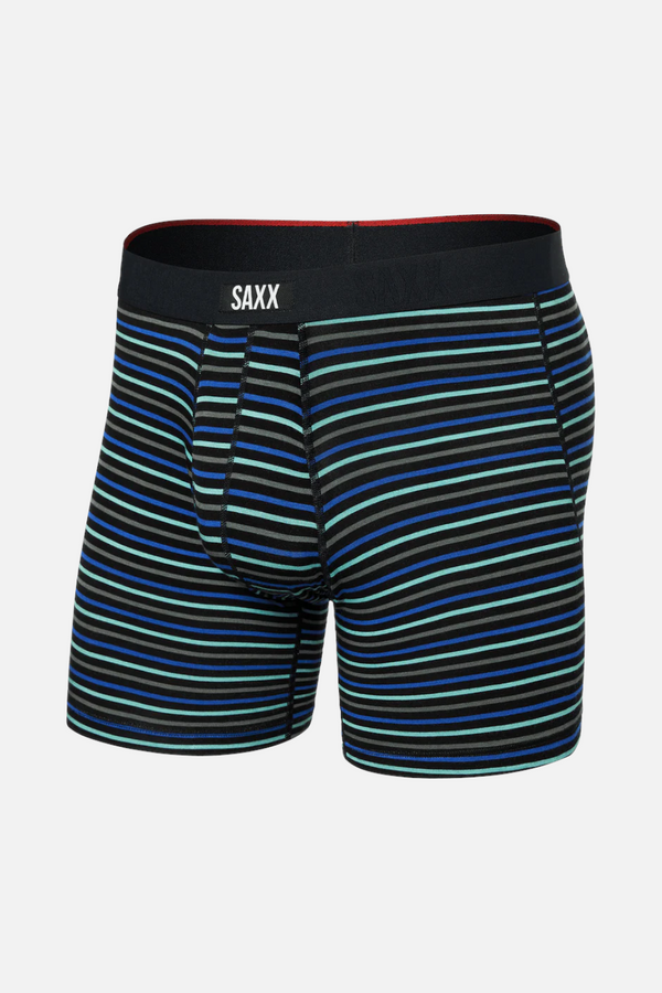 Experience the evolution of comfort with Saxx Men's Vibe Xtra Comfort Boxer Brief in Gents Stripe. Our best-selling design now features enhanced Vibe Xtra Soft technology paired with innovative Stop Drop Technology™ and advanced wicking capabilities integrated into the signature BallPark Pouch®. Crafted from premium super-soft fabric, this boxer brief delivers a refined fit with a functional fly and No-RideUp Leg™ for all-day confidence and support.
