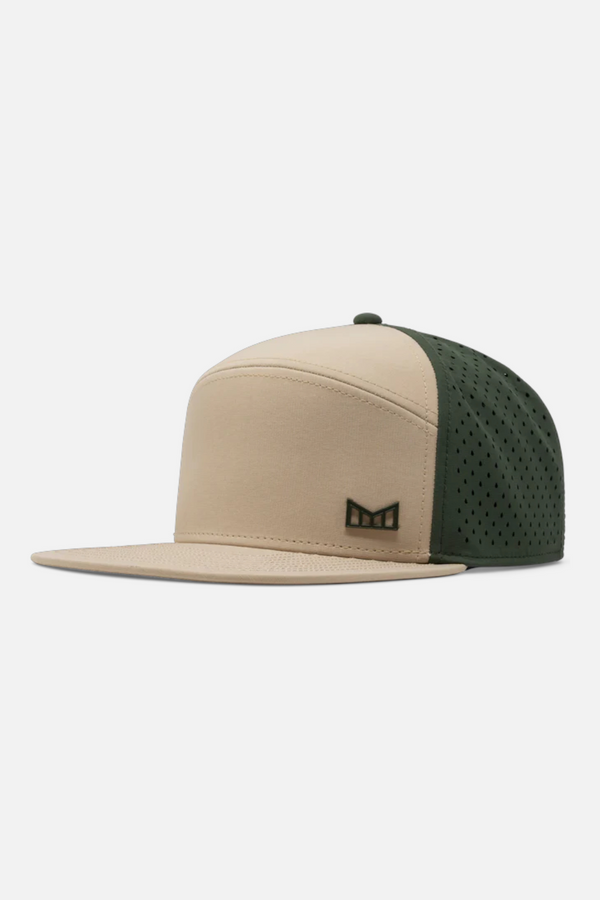 The Melin Trenches Icon HYDRO in Khaki & Kombu Green features advanced hydrophobic technology on the crown panels that actively repels water, keeping you dry in wet conditions. Crafted from durable, breathable materials, this hat is not only water-repellent but also floatable, offering practical protection without sacrificing comfort or style. Perfect for those who demand both performance and refined design.