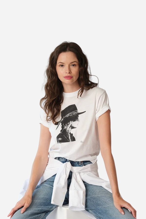 We'd like to introduce you to our Mushie Tee! The name says it all. Constructed from our softest cotton and washed so it feels like it's been in your closet forever. Slightly boxy but also the perfect length to tuck into your jeans. My husband and I call each other Mushie, we love to stay in and watch TV and we love to go out on a date night, just like your new tee. ….. I think it's the perfect wearable canvas for my art.