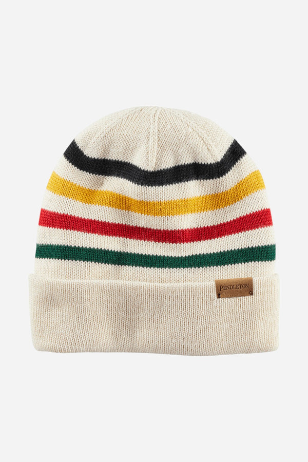 Stay warm all winter and rep Pendleton's classic stripe design with the Pendleton Glacier Stripe Knit Beanie. This beanie is a unisex style offering extra stretch and extra comfort. Featuring a Pendleton patch.