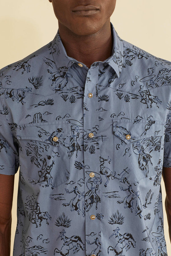 Pendleton Woolen Mills Laramie Short Sleeve Snap Front Shirt in Blue Lariat