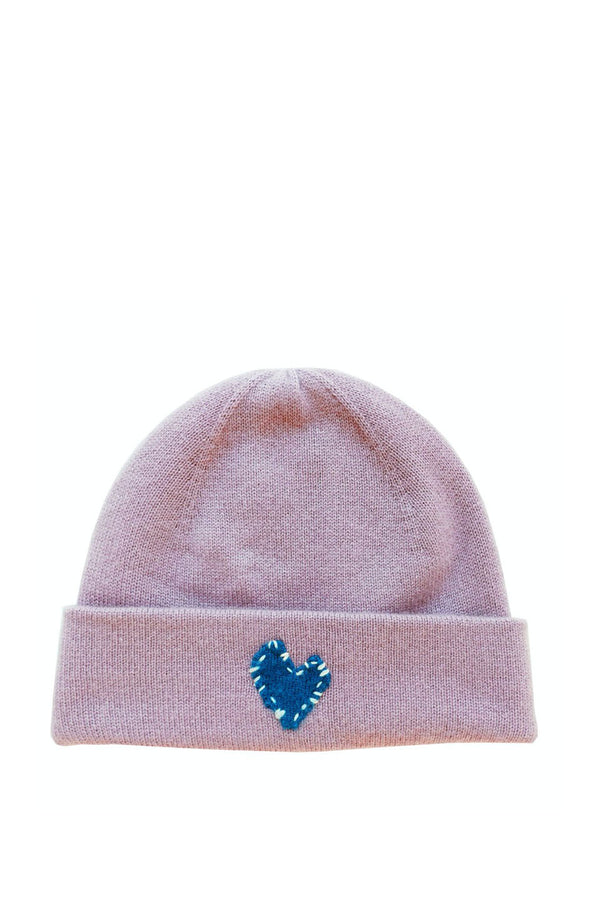 Super cozy cashmere beanie stitched with an imperfect heart and printed with "LOVE" under the fold.
