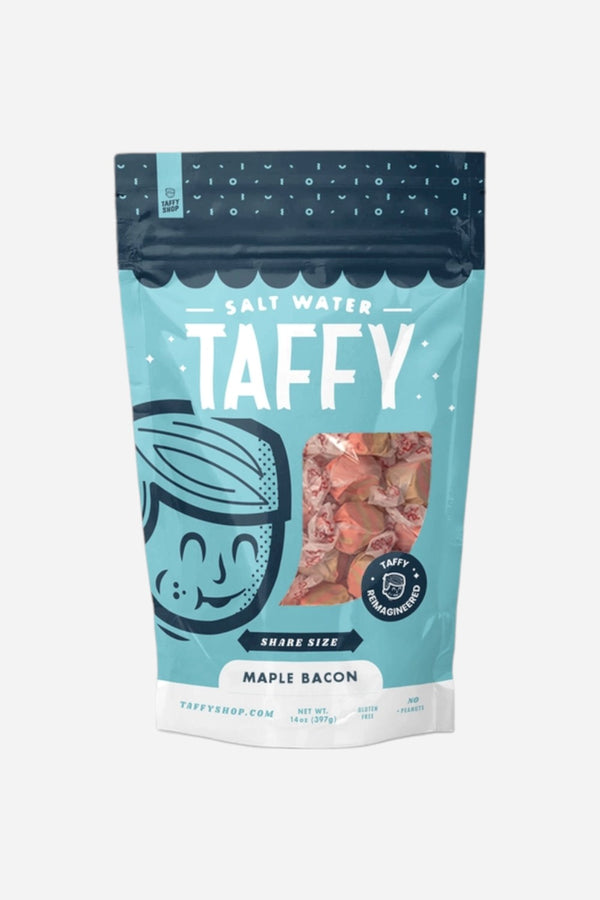 Your eyes do not deceive! There is no denying that bacon makes everything better, including our deliciously unique Maple Bacon taffy! Are those pink lines in the taffy real bacon? No, but I dare you to tell the difference. Taffy Shop's Maple Bacon saltwater taffy is guaranteed fresh. Made with love in the USA.