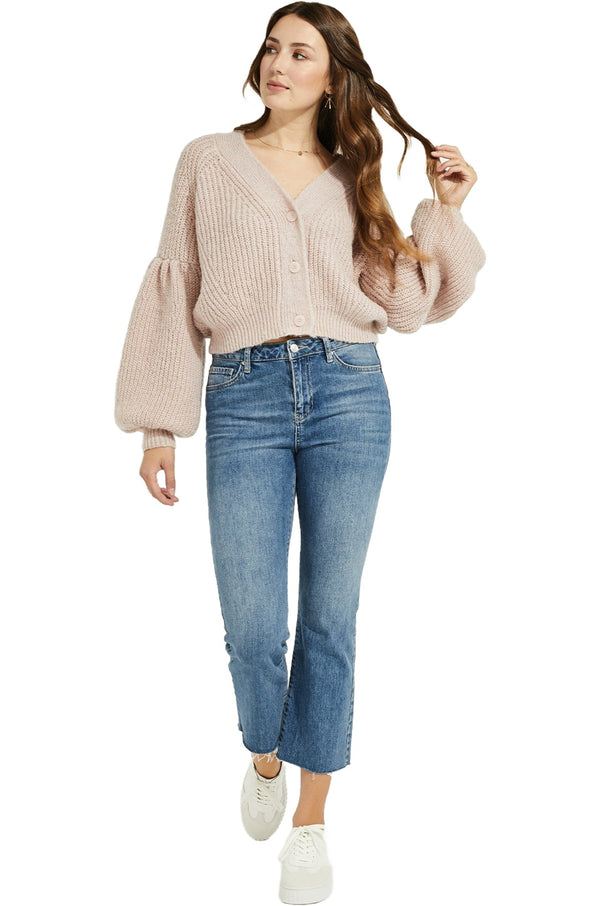 The Mira cardigan is made of a super soft, fluffy yarn and features a pleated sleeve detail. Wear this cardigan buttoned up or worn open with your favorite tee underneath.