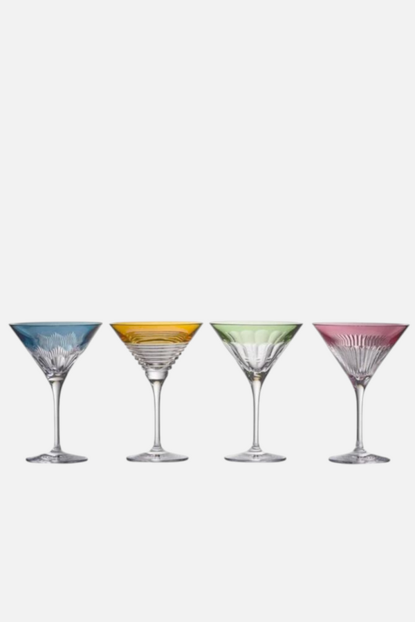 Elevate your cocktail experience with the Waterford Mixology Color Martini Set of 4. Each glass showcases Waterford's renowned craftsmanship through vibrant hues and sophisticated geometric patterns—Argon, Circon, Neon, and Talon designs that blend artistry with function. Perfect for martini enthusiasts, these distinctive glasses transform any gathering into an occasion of refined elegance, whether you're hosting an intimate dinner or a lively soirée. Shaken or stirred, serve your cocktails in timeless style.