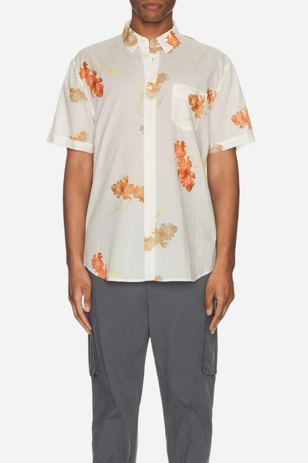 The Monaco Shirt is lightweight and laidback, perfectly capturing the spirit of Southern California style. Made from a Tencel-cotton blend with exceptional texture and softness, the short sleeve button-down shirt in black features a slim fit, blue floral pattern, and single patch pocket at the chest.