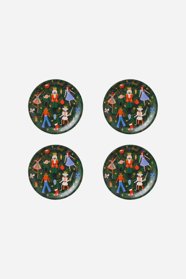 Our set of four coasters are handmade in Sweden from lightweight, FSC-certified birch and packaged in a gift-ready box. Featuring our favorite Nutcracker characters, these coasters will protect your surfaces and add a festive touch to your coffee table.