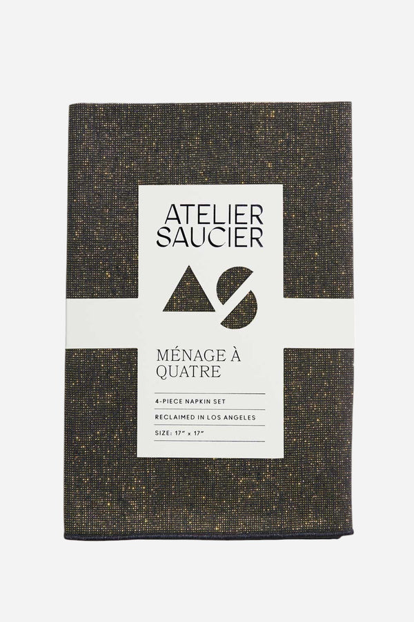 This black and gold gilded napkin set will shimmer and shine any way you present it. The jet black border reins in the golden tones and truly commences this festive season!