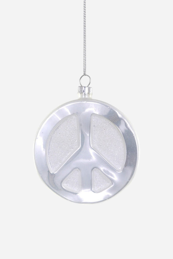 Handcrafted white peace sign ornament to decorates your tree with high-end vibes and harmony this year.