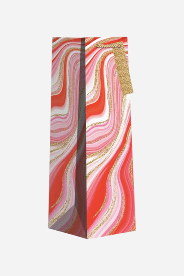 Make your gifting game strong with this Peppermint Bark Tote Bottle Gift Bag - it's festive, fun, and sure to impress! This eye-catching bag will give your gift a real WOW factor with its red, pink, and gold colors, charmingly cute design, and thoughtful gifting details. Get ready to be the hit of the party!