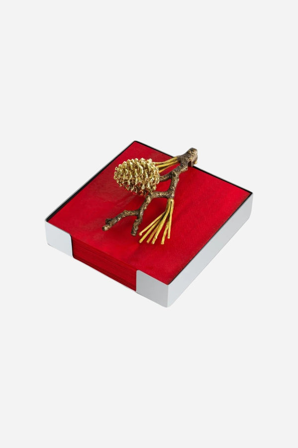 The Pine Cone Collection, with its antique gold and darkened bronze patinas, celebrates the glow and warmth of the holiday season. Inspired by a fallen pinecone kept on his desk, Aram has always been intrigued by pinecones and their ancient symbolism. The Greeks and Romans, as well as other cultures throughout history, have incorporated pinecones in their art, religious beliefs and mythology with common themes of regeneration, wisdom, and renewal.
