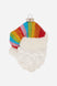 This smiling Santa celebrates love with his rainbow-striped hat.