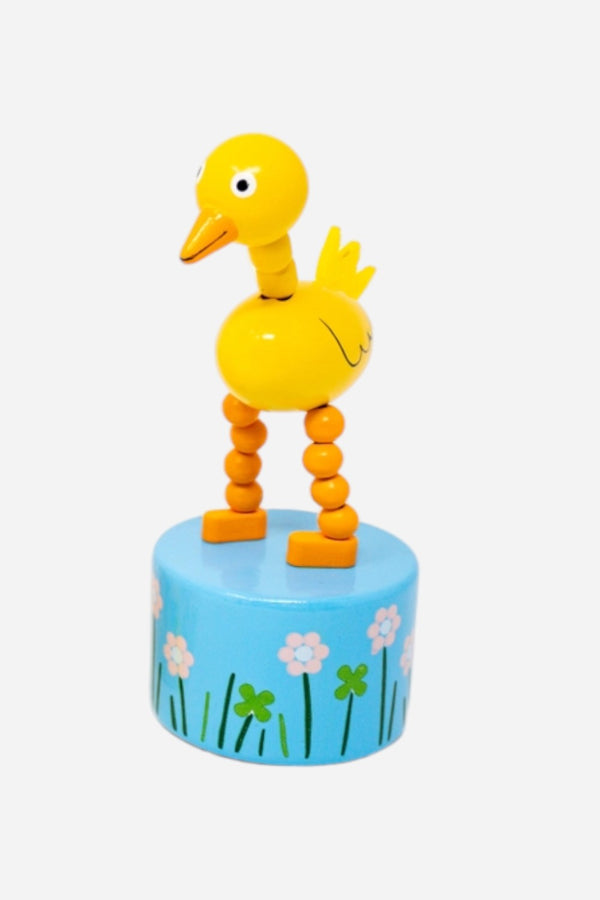 Jack Rabbit Creations duck and bunny push puppets are packed with fun! Press the bottom button and watch them collapse, then release, and they pop right back up—ready for more playtime! Perfect for Easter baskets! A timeless wooden toy, reimagined by Jack Rabbit Creations.