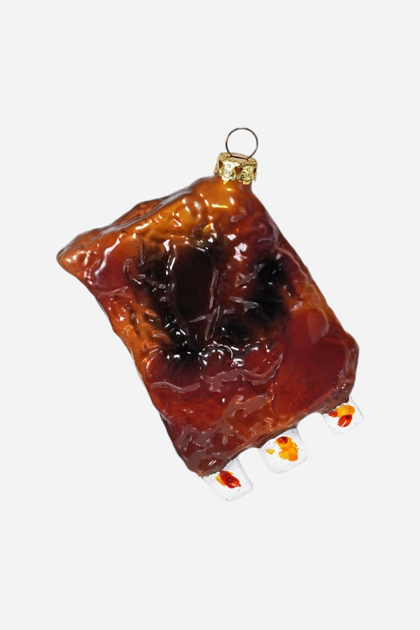 Introducing the Rack of Ribs Christmas Ornament by Cody Foster - a festive fusion of culinary delight and holiday charm. Crafted meticulously from high-quality glass, this unique ornament is perfect for the BBQ enthusiast or foodie in your life. Its shimmering details and lifelike design make it a standout piece on any Christmas tree. Designed by the renowned Cody Foster, it ensures premium quality and an authentic touch to your holiday decor. Elevate your festive decoration game with this delightful and memorable addition to your collection.