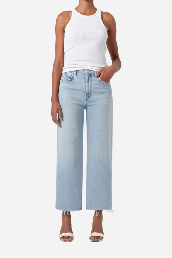 The Ren Jean offers a flattering high-rise waist, a relaxed fit through the hips, and a wide leg silhouette. Style it with a sleek tank or bodysuit for a chic, effortless look.