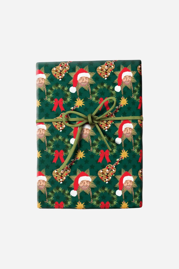 - Each sheet is 20" x 29", printed on sturdy 70lb paper and features a pattern of illustrated Willies adorned in a Santa hat, surrounded by pot leaf wreaths and his beloved guitar, Trigger decorated like a Christmas tree on a dark green background.