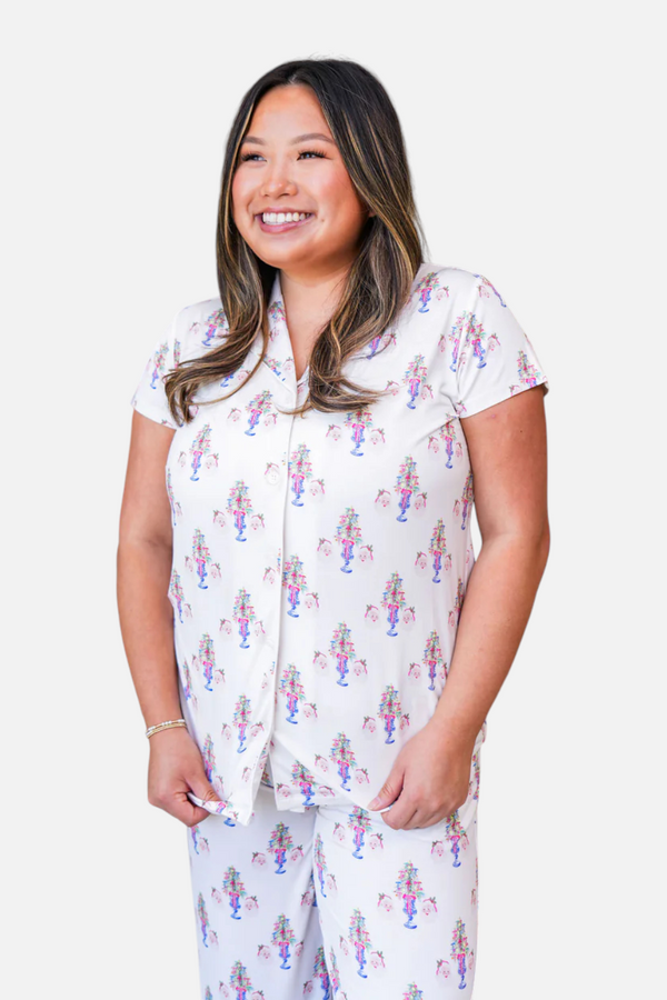 Celebrate the season in style with our Sassy Santa Pajama Set, a sophisticated take on holiday sleepwear. Designed in-house by co-founder Elise, this heirloom-quality set features hand-illustrated Santa figures reimagined with modern flair—adorned in vibrant pink and blue accents against a crisp white background. Each whimsical motif brings festive charm with an effortlessly chic edge, blending Christmas magic with contemporary elegance. Perfect for cozy nights and holiday gatherings, this playful yet refined design transforms traditional seasonal wear into a wardrobe staple that celebrates both tradition and individuality.