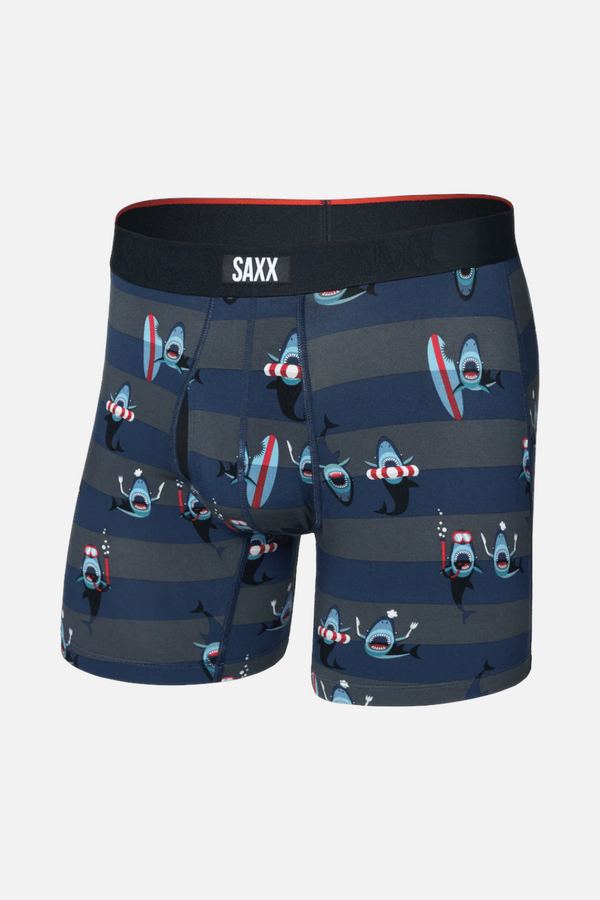 Elevate your everyday comfort with Saxx Men's Vibe Xtra Soft Comfort Boxer Brief in Shark Bite. This best-selling style delivers feel-good vibes through innovative engineering: Stop Drop Technology™ integrated into the signature BallPark Pouch® keeps you supported and dry, while No-RideUp Leg™ ensures all-day stability. Crafted from luxuriously soft EcoVero® fabric with advanced wicking properties, these boxer briefs feature a functional fly opening for convenience. Experience the perfect balance of performance and refined comfort.