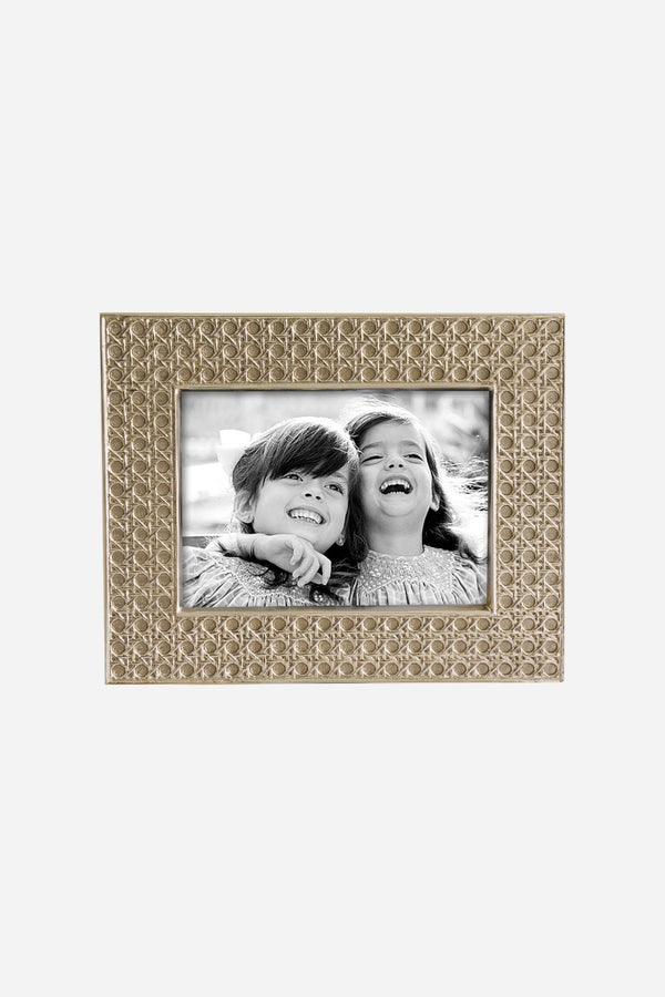 Imagine a frame designed classic Rattan style! Imagine no more, the shimmering FRAME Sierra Modern Rattan 5 x 7 (Gold) in a champagne gold-tone features a sumptuously textured rattan-inspired surface made fresh and new with a proprietary metallic finish. Designed to display a 5x7 inch photo, the handsome frame looks stunning on a desk, mantle, or table. The delightfully decorative piece adds a modern new edge to Beatriz Ball’s award-winning designs. A number one trend in decorating, Rattan has an ability to feel both contemporary and vintage at the same time and transcends all interior styles and trends. Stunning pieces, timeless and unique, this collection brings to market designs that have never been seen before. Beatriz Ball’s intensely handmade products use eco-friendly and sustainable materials and are crafted by artisans who trace a heritage of metalworking for generations. Made of a top quality, easy-care, aluminum alloy. Tarnish free!