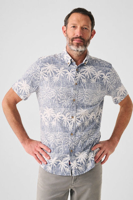 For sun-drenched getaways, we crafted this shirt from a super soft custom fabrication made primarily from hemp. Lightweight with a bit of stretch, its unique hand feel also gives our signature travel-inspired prints an added natural texture.