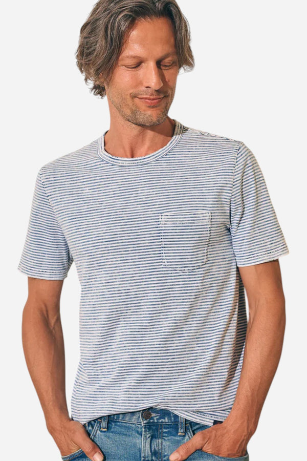 Inspired by the perfectly imperfect look of a well-worn vintage t-shirt, our tee is knit with slub cotton yarns for texture and authenticity. Dyed with natural indigo and garment washed for softness, it's the not-so-basic, basic.