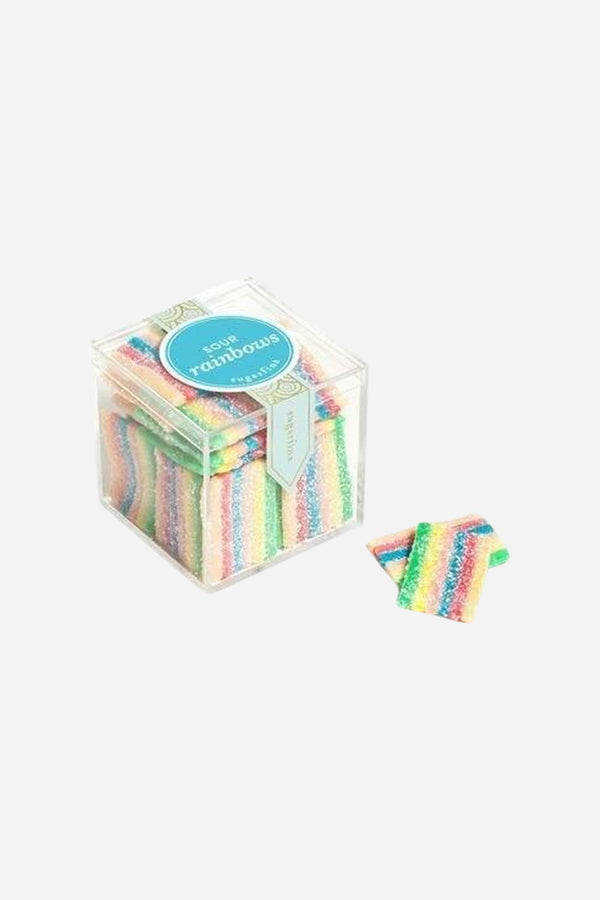 Follow the candy rainbow and discover these deliciously-sweet and sour gummies in colorful rainbow hues. Dusted in tart sugar crystals, these fruity candies will bring a fresh burst of sunshine to your taste buds. Just one bite makes those rainy days disappear!