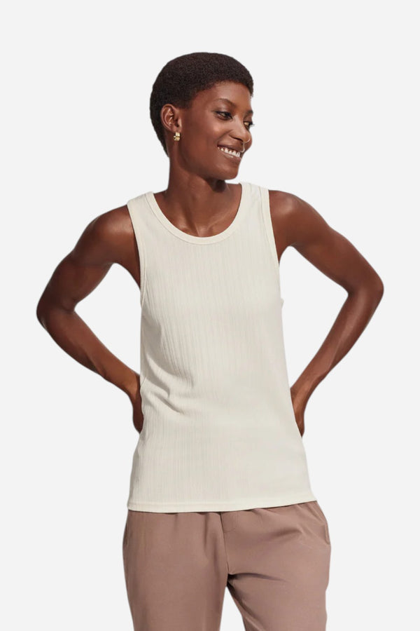 Crafted from ultra-soft viscose rib, this fitted Varley Thurman Tank features a flattering scoop neck and wide binding for a sleek, streamlined look. Perfect as a base layer under knitwear on cooler days or worn solo when the temperature climbs—versatility, made effortless.