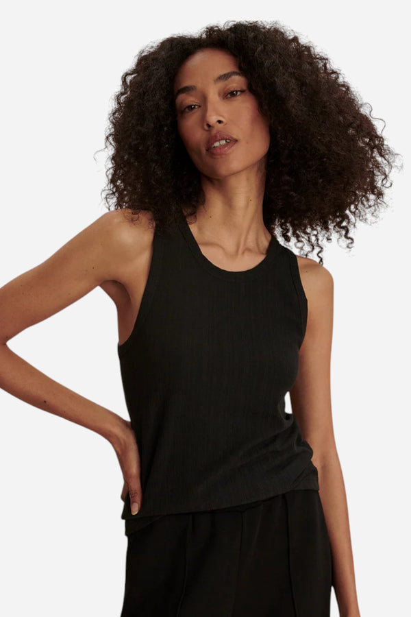 Crafted from ultra-soft viscose rib, this fitted Varley Thurman Tank features a flattering scoop neck and wide binding for a sleek, streamlined look. Perfect as a base layer under knitwear on cooler days or worn solo when the temperature climbs—versatility, made effortless.