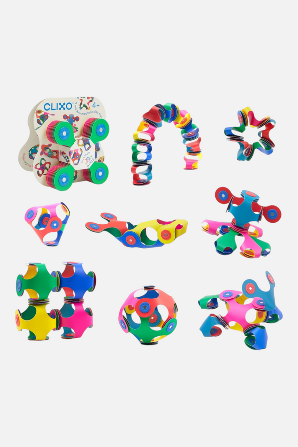 Introducing the Clixo Kid's Tiny & Mighty Pack—a collection of nine interlocking pieces designed to inspire boundless creativity. Each signature Quad shape connects seamlessly to form imaginative constructions: from slithering serpents to regal crowns, rolling spheres to towering stacks. This pocket-sized wonder pack transforms simple play into discovery, encouraging spatial reasoning and artistic expression. Perfect for young builders seeking portable, screen-free entertainment that grows with their imagination.