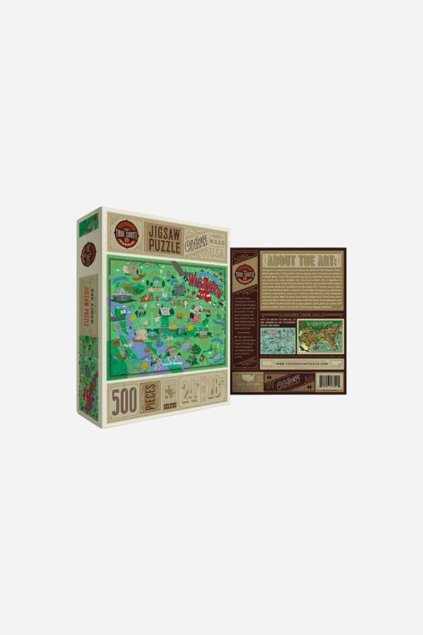 - Puzzle images are created in a collaborative effort between artists and True South to highlight unique facts carefully researched about each location. Fun facts are listed on the back and inner sides of boxes.