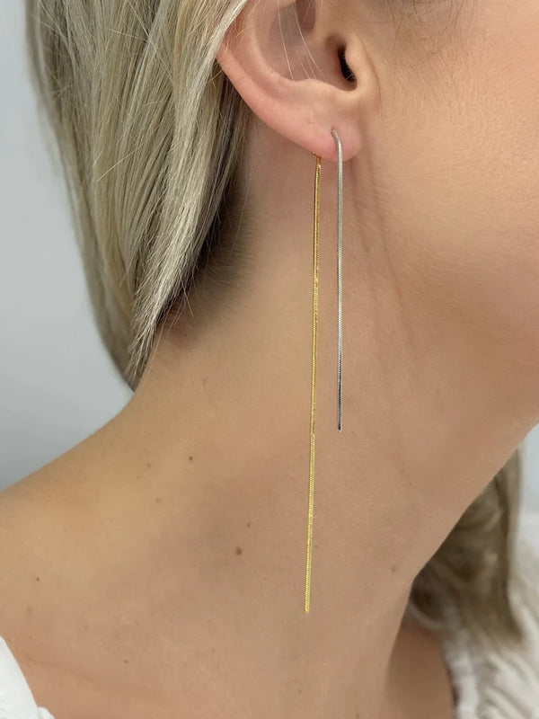 Silver & Gold Long Thread Minimalist Earrings Silver & Gold Plated