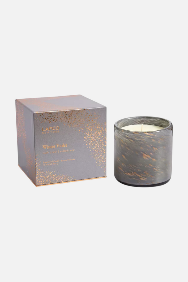 Experience the refined elegance of the Lafco Winter Violet Signature Candle. This 15.5 oz candle weaves aromatic myrrh with smoky cedar and delicate violet, creating a captivating fragrance that evokes the magic of a winter wonderland. Perfect for adding a sophisticated, festive ambiance to any space.