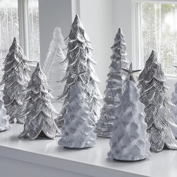 Mirroring nature with a rare combination of refined ceramics and sculpted metals, our 11" Evergreen Tree is handcrafted from 100% recycled, buffed-until-brilliant aluminum. Blend with our 5", 7" and 9" Evergreen Trees or mix with a variety of our seasonal Traditions Winter White or White Ceramic Tree pieces for the perfect home decor to celebrate this holiday season. Beautifully boxed in a Red Mariposa Gift Box - we make gifting easy!