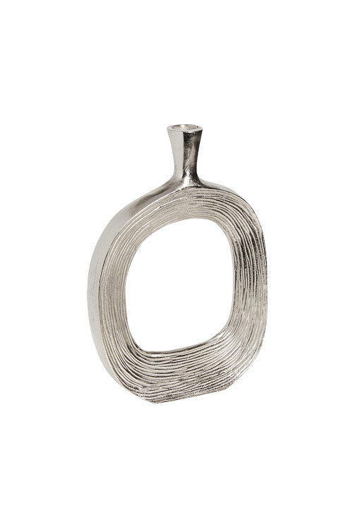 Short Silver Metal Vase with Stripes. A stunning blend of contemporary design and elegance. Crafted with precision, this exquisite vase features sleek silver strips that wrap around its metal body, creating a visually striking pattern. Its compact size makes it perfect for showcasing single stems or small floral arrangements. The versatile design seamlessly fits into any interior style, adding a touch of modern sophistication. The durable metal construction ensures stability and longevity. Elevate your home decor with the Short Silver Metal Vase with Stripes, a captivating piece that brings beauty and style to any space.